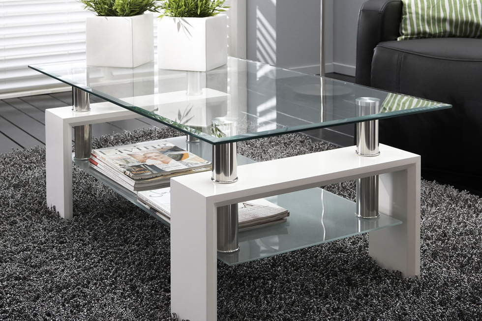 Transparent glass construction makes this glass coffee table a welcome addition to any living space that prioritizes bright natural light.